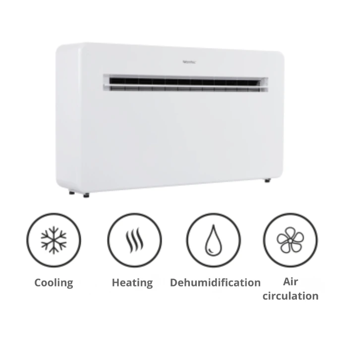 It is a compact air conditioning unit that does not require an external unit. The entire refrigeration system is integrated into a single indoor unit mounted on the wall of the room.